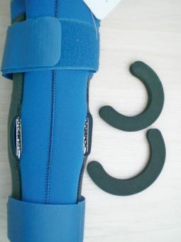 Kniebandage mit Stahlgelenkschiene, Patella-Aussparung und Pelotte